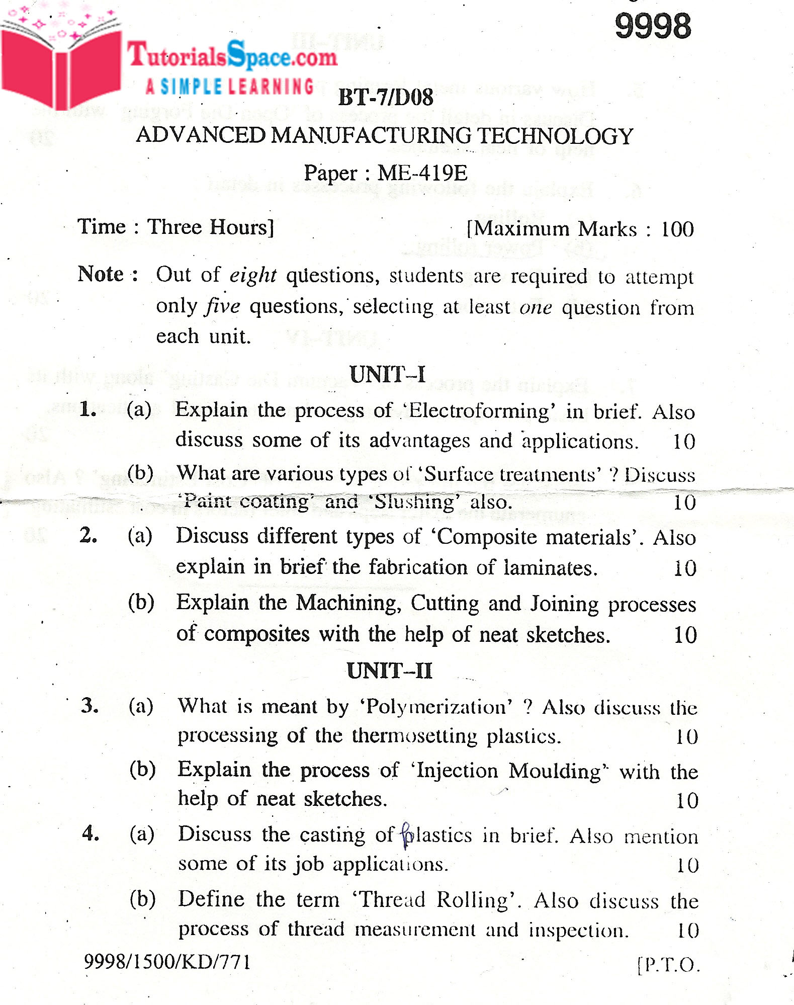 Download 2008 Advanced-Manufacturing-Technology Question Paper